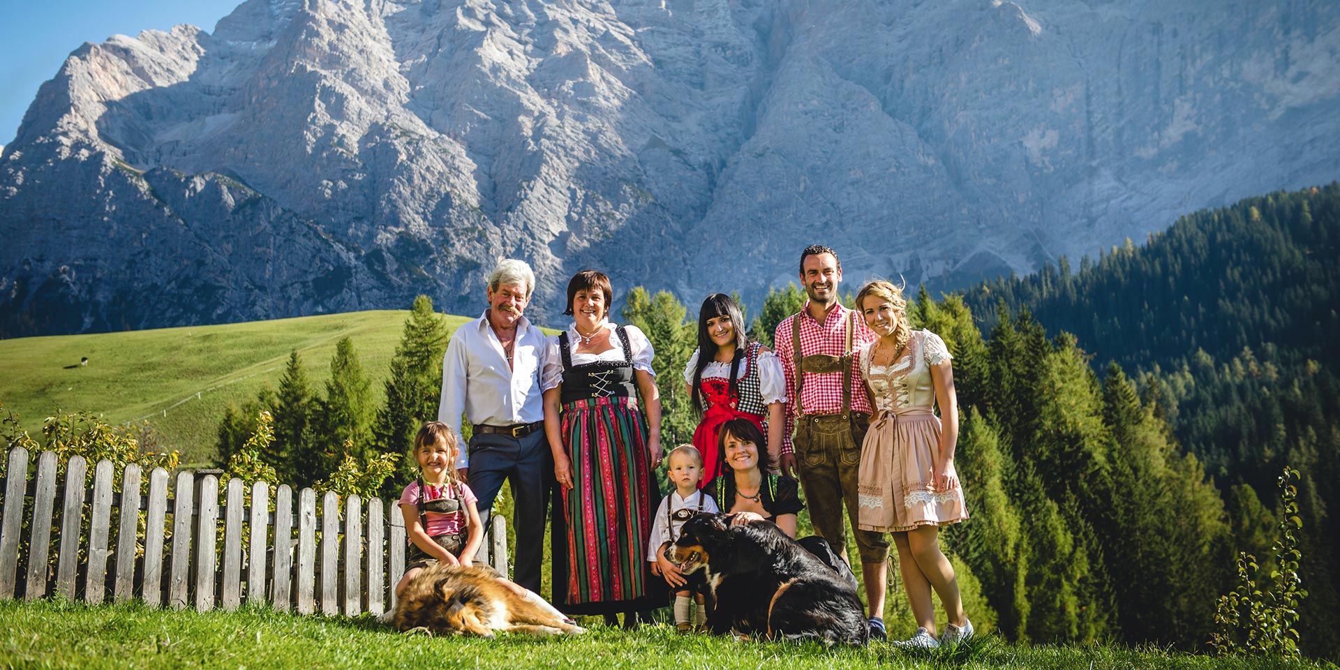 Our farm is located in the idyllic La Valle/La Val in Alta Badia at 1,596 metres above sea level: Swiitch it all off and gain some new power with an amazing view of the jagged Dolomites summit, such as the majestic "Sass dla Crusc" or over the meadows and forests of La Valle in Alta Badia. How else could you forget your daily routine in a nicer way ...?